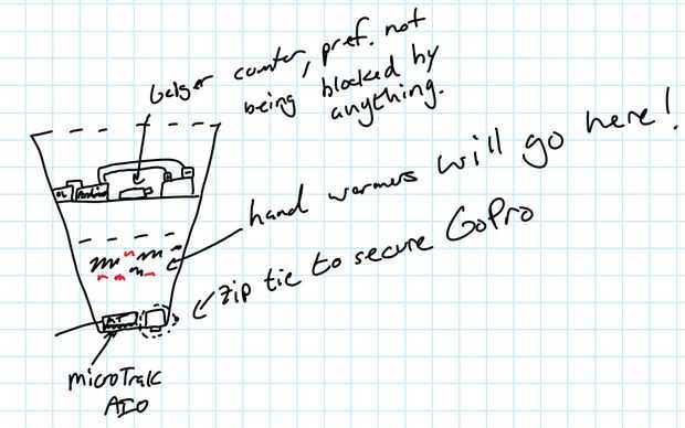 Nota: Sobre cada elemento, centrándose especialmente en el Arduino y GoPro, agregamos muchos calentadores de la mano (oxígeno activado) justo antes de lanzar el balón con el fin de mantener el equipo caliente como alcanzó cerca del espacio.
