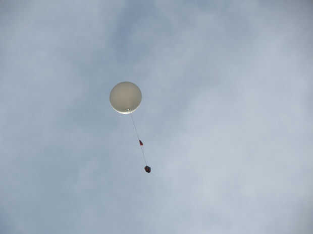 No se sorprenda si el globo asciende muy rápidamente! Nuestro globo despegó muy rápido y esto al principio nos causaron a preocuparse acerca de cuánto helio ponemos dentro (Recuerde, el helio más añadido significa cuanto antes aparecerá).