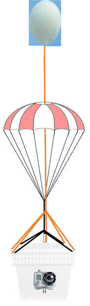 El diseño de nuestro globo de gran altitud es bastante simple. Desde el globo, tenemos una cuerda que une el paracaídas, y entonces la carga útil. La carga útil se construye fuera de un poliestireno estándar más fresco, pintado de color naranja brillante para la visibilidad. Dentro de la carga útil tenemos nuestros sensores, incluyendo el GoPro y calentadores de la mano para mantener la electrónica de la muerte en el frío.