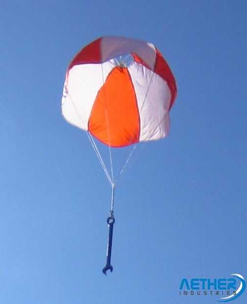 También se necesita un paracaídas para frenar el tren de balón y capacidad de carga (la cuerda que sostiene todo en él) después de que el balón salga cuando se pone muy alto! Recomendamos optar por un bien conocido paracaídas especialmente si esta es su primera vez. Elegimos un paracaídas nominal alta fabricado otra vez por proyecto de éter, que calidad de había asegurado.