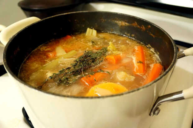 Añadir perejil y apio y cocine durante unos 35 minutos más y bajar el calor.