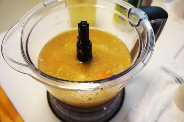 Coloque el resto de la mezcla de caldo y las verduras en un procesador de alimentos o usar una licuadora y licúe la mezcla hasta que quede suave.