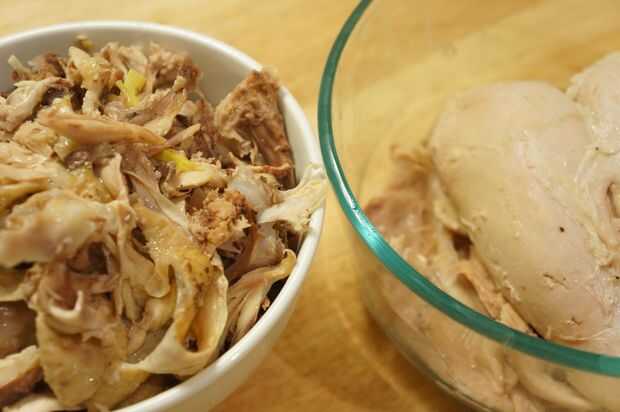 Retire el pollo de la canal y coloque el pollo en un recipiente cubierto para hacer una receta en un momento posterior.
