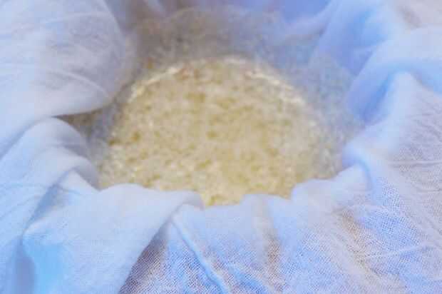 Colar el caldo con una toalla de saco de harina limpia, libre de jabón en un recipiente separado.