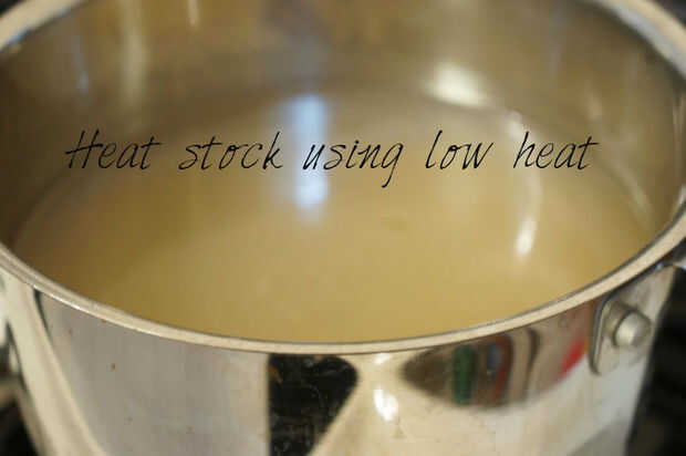 Mientras el caldo ya esté caliente, baje el fuego a calentar. Quieren a fuego muy lento para esto.