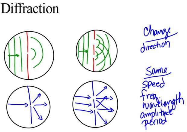 En tercer lugar, se piden a los estudiantes a investigar lo que ocurre cuando una onda pasa a través de una abertura en una barrera. Después de esta investigación, la interacción se denomina difracción.