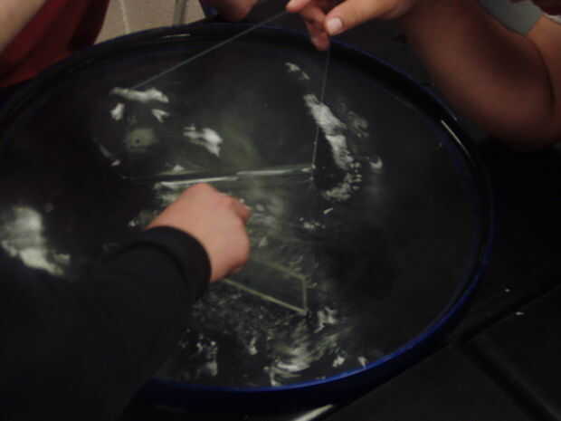Con el equipo se piden a los estudiantes a la investigación cómo las ondas rebotan de un obstáculo. Después de esta investigación, la interacción se denomina reflexión.