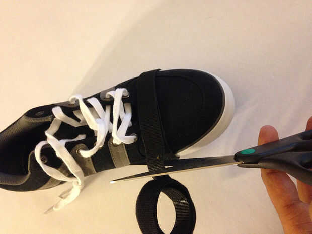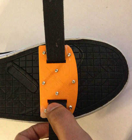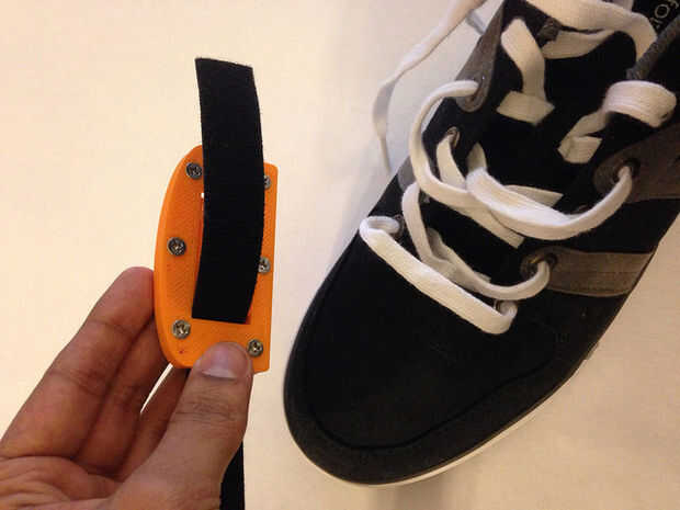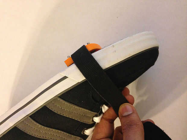Antes de cortar la pieza de velcro tomar una medida aproximada por arrollar la cinta de velcro alrededor de la zapata con la parte impresa 3D