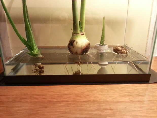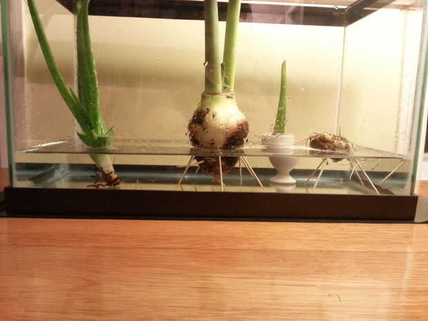 Yo sumergido mis bulbos (y Aelo) sobre la mitad bajo el agua. Lo suficiente como para que las raíces que constantemente bajo el agua (al igual que la imagen en el paso 1).