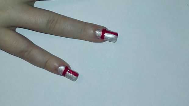 arco de uñas paso a paso tutorial de arte siempre luce muy elegante y con clase!!!Paso 1: Aplique la capa base y deje que se seque totalmente (rojo)Paso 1: Paso 2: tome un color de contraste en una placa rugosa (blanco)Paso 2: Paso 3: tomar la herram