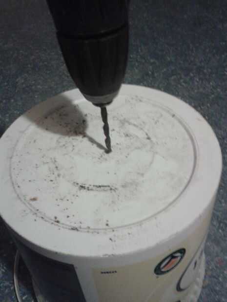 dril un orificio en la parte inferior del cubo (mismo diámetro que el perno) de la parte inferior flojo de/del cubo y girar. Ahora tienes un bol que quepa en el cubo cuando se gira