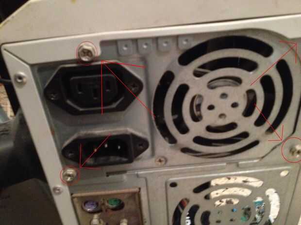 Okay. Ahora quiere la fuente de alimentación de la caja de la PC por desatornillando los cuatro tornillos que sujetan la fuente de alimentación de PC en el lugar.