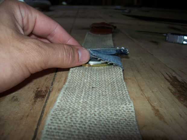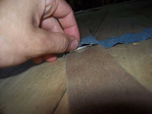 Coser el dril de algodón sobre el imán y el cinturón. Si es mezclilla, asegúrese de que se doble el borde sobre así no desentrañar. Coser sin embargo quiero - hice 1,5 puntos hacia adelante, una puntada hacia atrás. Cuando mi mamá me enseñó a.