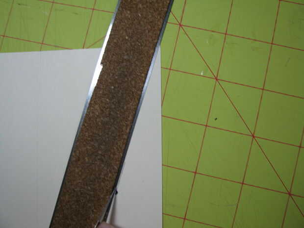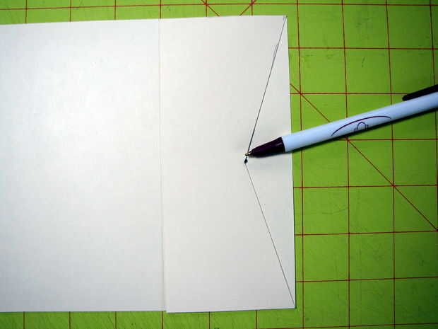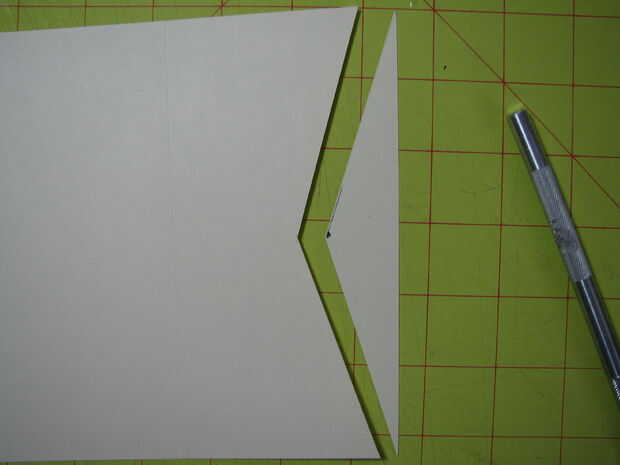 Coloque la plantilla sobre la pieza del pequeño recinto y hacer un punto en el centro con su pluma o lápiz. Usar regla para alinear con el punto que ha realizado y el borde y cortar con la navaja X-acto. Lo mismo para el otro lado.