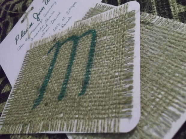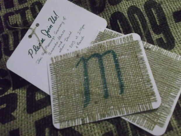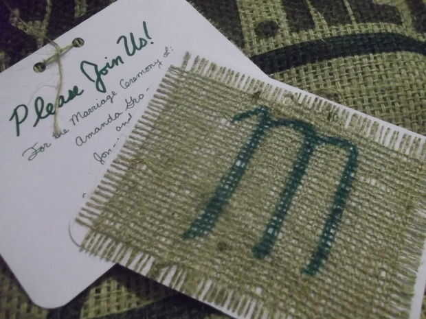 Si usted está teniendo una boda rústica y quiere incorporar un montón de arpillera en tu decoración, usted querrá empezar con las invitaciones. Estos eran fáciles de hacer, y cada uno tomó menos de 5 minutos, incluyendo el tiempo que me llevó a escribir la información de cada uno. Con tarjetas pre impresas y algunos asistentes, usted puede conseguir todas sus invitaciones en ningún momento.
