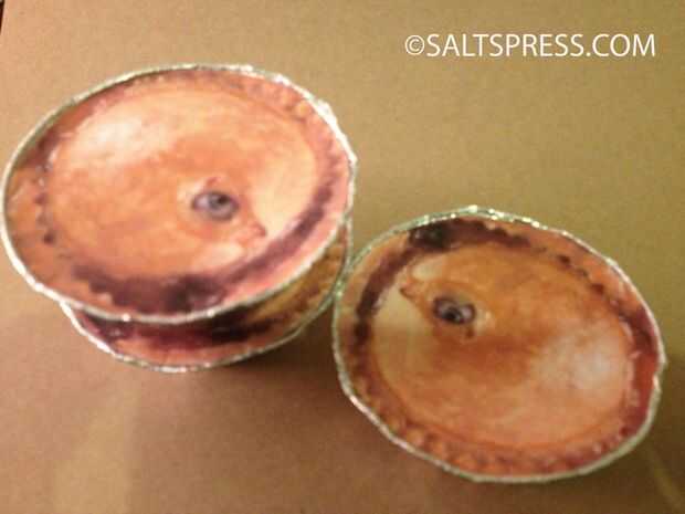 Goog lo esto es que puede utilizar esta misma idea para un miedo caramelo o dulce plato para los huéspedes para abrir. Para crear la capa de ojos de pie, tomé una foto de la parte superior de un pastel de carne de cerdo y luego una foto de un ojo y luego utiliza photoshop para comp los dos juntos Asegúrese de utilizar sombreado dentro y alrededor del ojo para hacerlo realista.