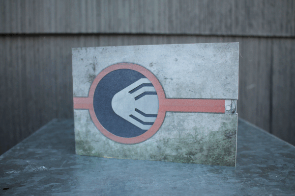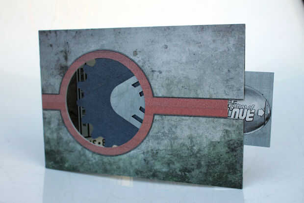 Inspirado en Fallout y Torchwood (y muchas otras fuentes), hemos diseñado una tarjeta con una balanceo puerta de bóveda que se abre para revelar los detalles de la invitación.