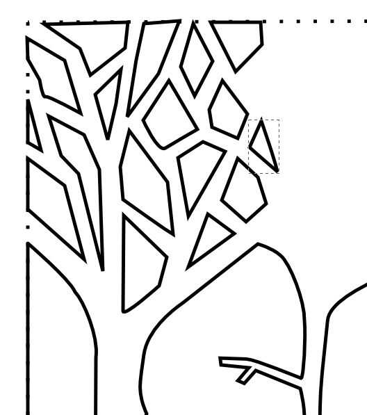 Para hacer los árboles que acaba de comenzar dejando puntos de referencia de línea donde pensé que iban a ir y moverlas según sea necesario. Se puede ver en el primer plano que se ve bastante angular. Eso es porque en este punto que no había hecho aún ningún suavizado.