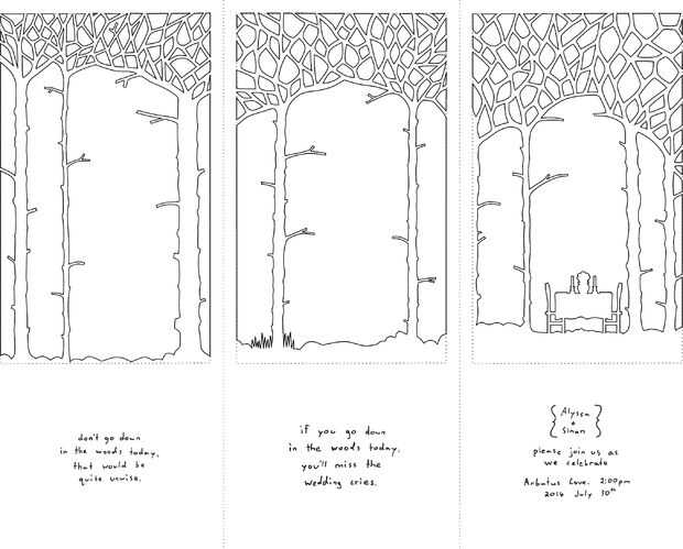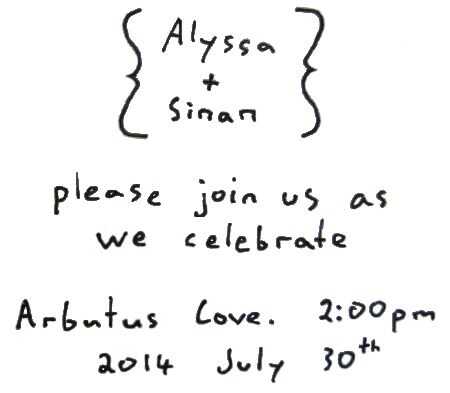 El primer bloque de texto dice no ir hoy, porque la boda ocurre más tarde. Los detalles son escasos útil. Estoy manteniendo esta boda (imaginaria) (muy) pequeña y cualquier persona que reciba una invitación está lo suficientemente cerca que hablo con ellos regularmente, y puede obtener cualquier otra información pertinente en persona.