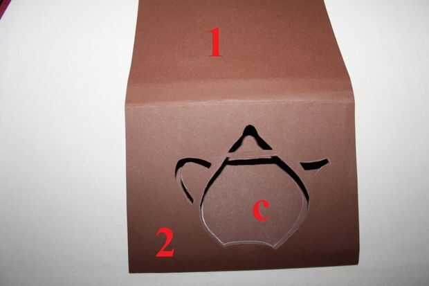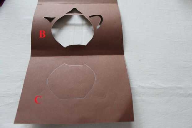 Doblar un lado de la hoja y hacia fuera de la línea de cuerpo del pote de té a C.Use un lápiz por favor