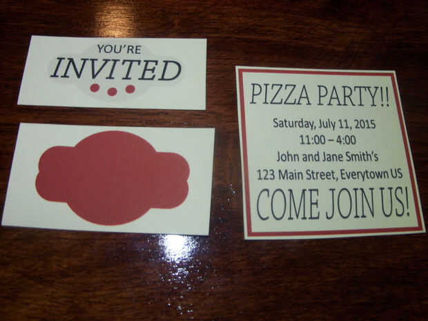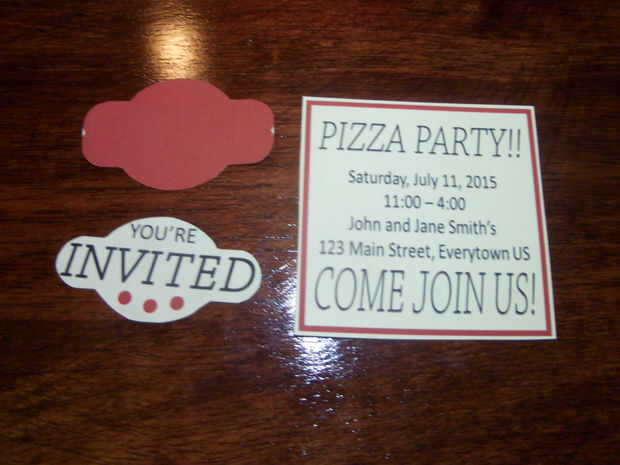 1. frente de invitar - quería crear algo ojo captura pero simple. Usted puede crear cualquier diseño que desee y vaya incluso más caja de pizza, buscando que esto. He creado este diseño en powerpoint, sin embargo usted puede hacer su diseño quieras, como cabe en la caja.