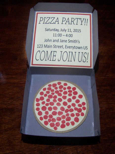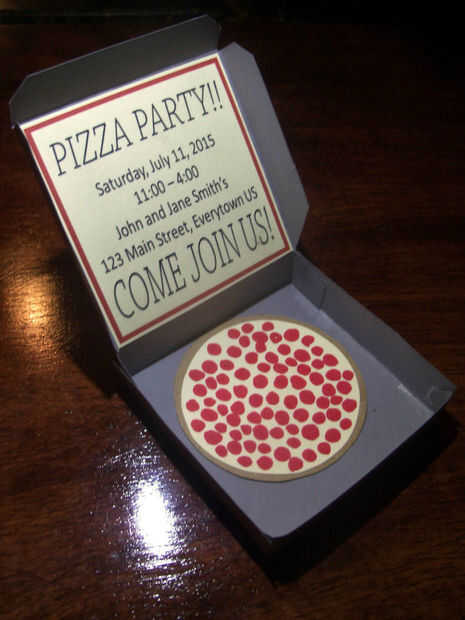 Ahora enviar a sus invitados, puede bien que encajen en una envolvente y los envían, entregarlas en persona, o usted podría intentar grabar el cuadro de arriba y hacer frente a la parte inferior y enviarlo por correo. (Aunque con este método podría resultar en una caja de pizza aplastados)