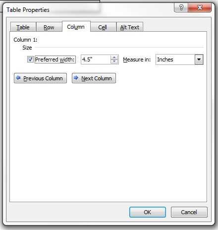 -En el pestaña de columna, haga clic en ancho preferido e Introduzca el ancho de una tarjeta