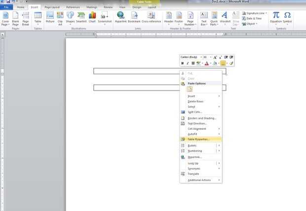 -Haga clic derecho dentro de una tabla y seleccionar "Propiedades de tabla"