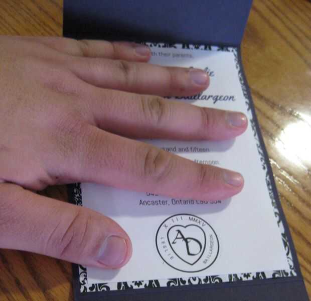 Utiliza Elmers pegamento todos y había manchada en la parte posterior de la tarjeta de invitación (no demasiado), centrada en lo mejor pude por el ojo y pegado a un pedazo de estera y alisar con una regla.