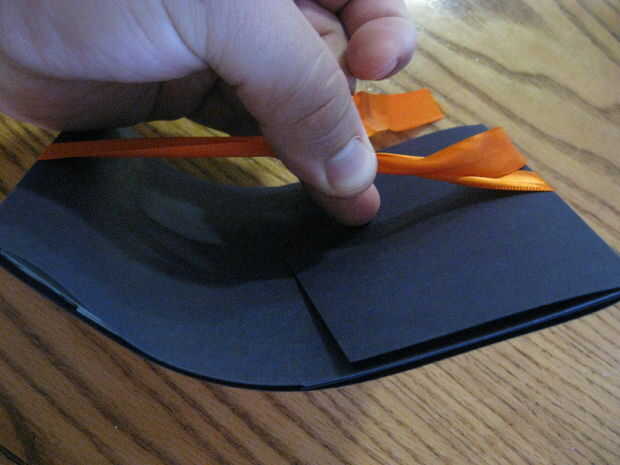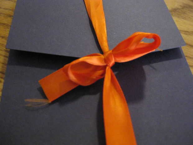-Una vez todo terminado, volver a voltear la invitación, tire la cinta tensa y atar un arco en el centro de la tarjeta.