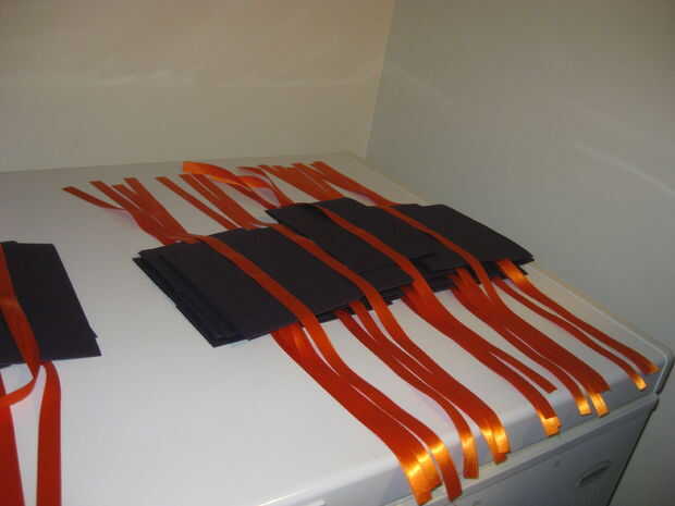 -Con unas tijeras, cortadas un borde bifurcado en los extremos de la cinta.