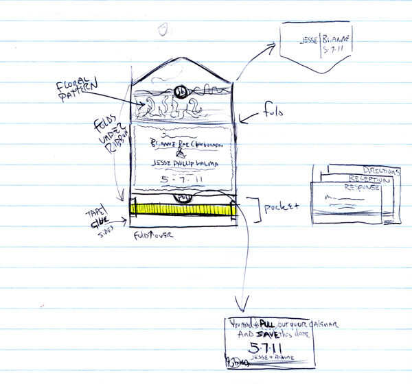 Lo que se me ocurrió fue una invitación del bolsillo que dobla. El logo y la fecha sería en el exterior con cortes en ángulo con verde. Yo quería tener 3 cartas visibles para sacar y uno oculto excepto una ficha. Así que sacó. Algunas de las ideas iniciales había terminé trabajando no como la adición de la cinta (debido a las restricciones postales) y papel especial. No quería quejarse de impresión gratis usé lo que la compañía tenía que ofrecer. # 60 texto (mate) y # 100 tapa culata (mate).
