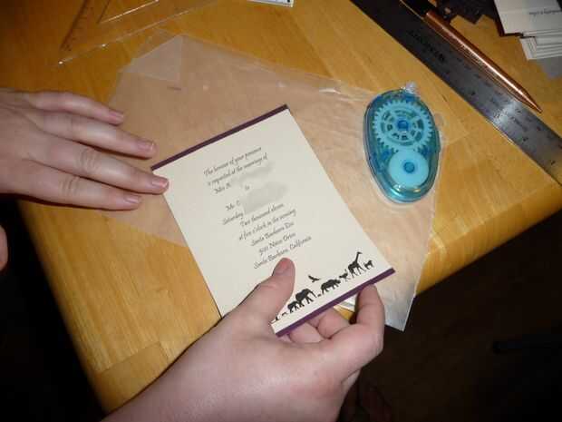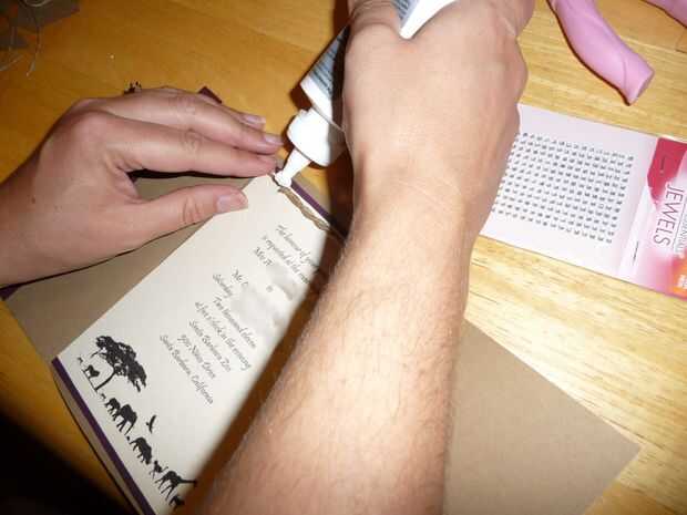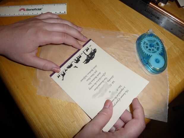 Aplique pegamento en la parte superior e inferior de la invitación usando el rodillo del pegamento.