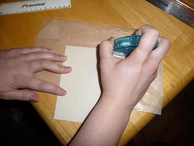 Una vez más, presione hacia abajo firmemente y limpiar los bordes con una cuchilla de afeitar.