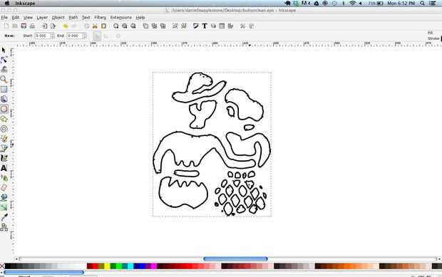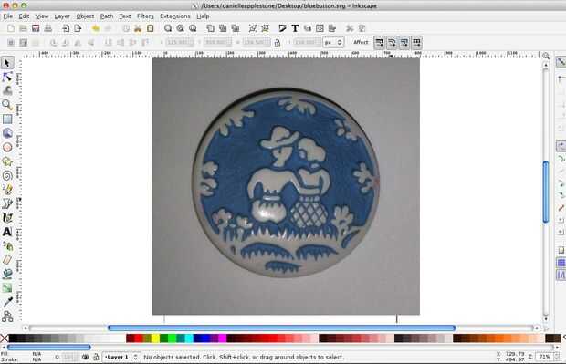 Importar la foto a un programa como illustrator Inkscape (gratuito). Después de eso, tienes que usar la función "trazar mapa de bits". Traza el contorno de su forma. Después de eso, necesita limpiarlo. He incluido el archivo vectorial (svg) que usé para el botón. Algún día, gran parte de estos pasos será simplificado, pero por ahora, el proceso es un poco involucrado.