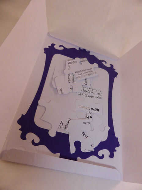 Para evitar que su rompecabezas piezas caigan hacen aletas poco. Corte 2x10cm piezas, puntuación a lo largo, redondear las esquinas con punzón o tijeras y pegamento a la parte inferior y superior de cada tarjeta. Esto hará que las esquinas parece mejor ya que abrir y cerrar la tarjeta dañan las esquinas de las aletas pequeñas.