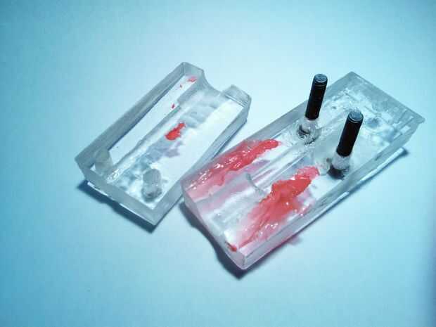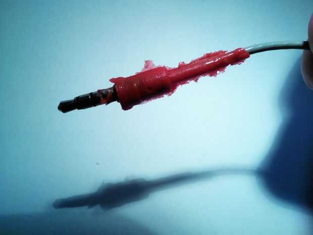 Al principio necesitará rociar aceite de silicona en las dos partes del molde, luego aplicar pegamento a un lado del molde y coloque la clavija mini jack con todos los cables soldados en su lugar. Cubrir con otra capa de pegamento caliente, pero no es mucho! y luego poner en la segunda parte del molde y presione fuertemente. Ahora usted puede esperar cuando el pegamento caliente se enfría.