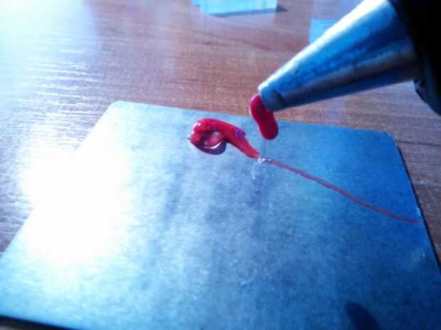 Compré rojo pegamento caliente, porque se ve mejor, se puede utilizar regular transparente o negro, amarillo, azul... cualquier color que usted encuentra en tienda.