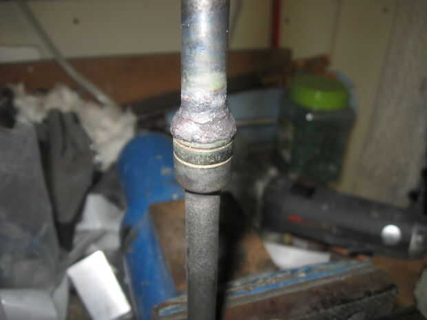 El émbolo tendrá que ser un poco más largo que la parte inicial de soldado con autógena. Nuevo taladro y pin esto o soldar con autógena, se me ocurrió soldar esto otra vez con mi antorcha oxy/del acetilo.