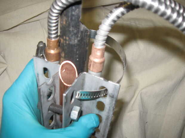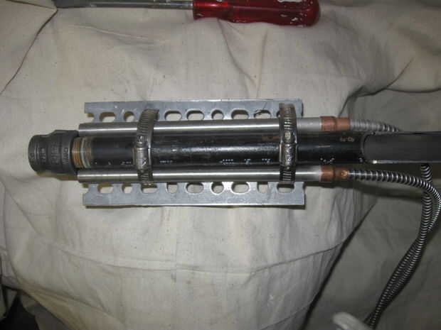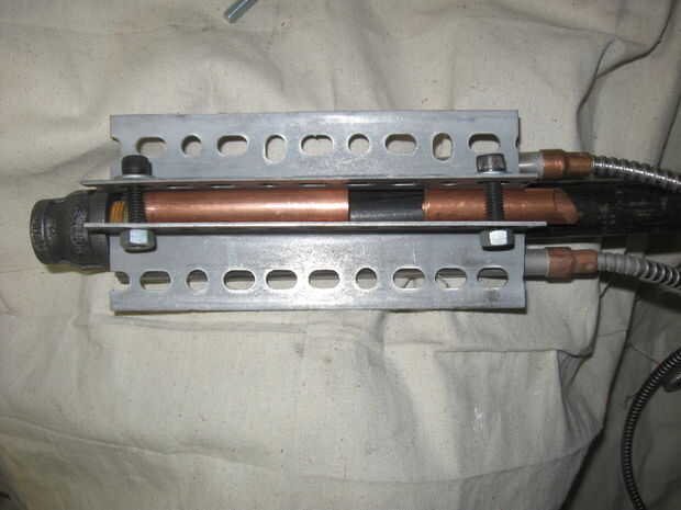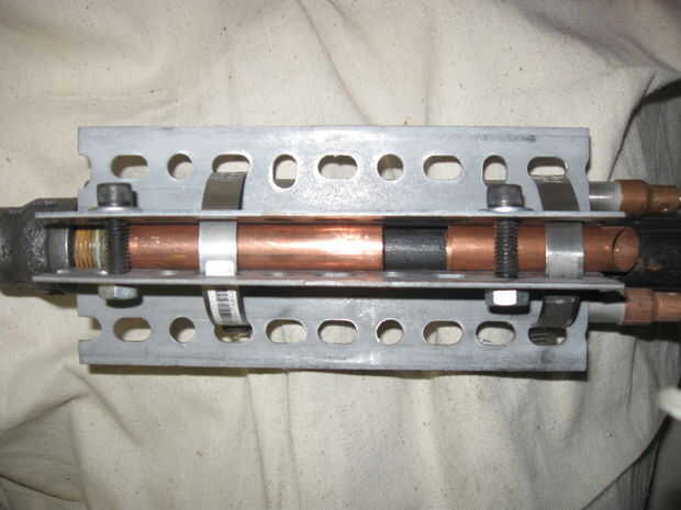 Mediante abrazaderas de acero inoxidable, sujetar los calentadores de la pipa de negro usando los soportes de metal ranurados y tubo de cobre como un espaciador como se muestra.