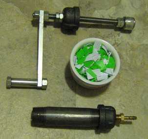 Carga: carga la extrusora mediante la primera colocación de la boquilla en el tubo del cuerpo. Llenar con tanto plástico como sea posible. Coloque parte del pistón-tornillo y gire tanto como sea posible. Repita para agregar más plástico.