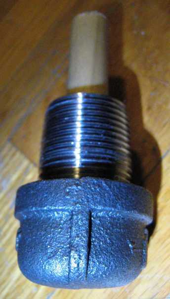 - Inserte el más pequeño 3/4 niple que se puede, en la parte superior del adaptador de la espiga.