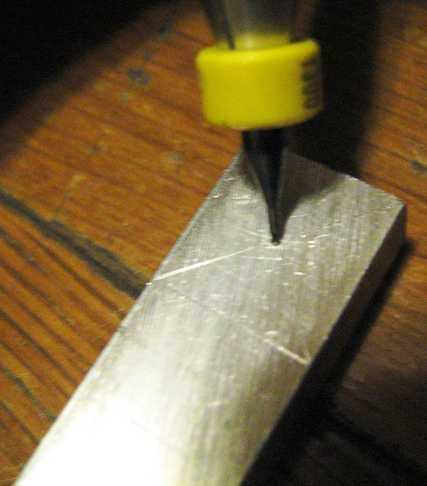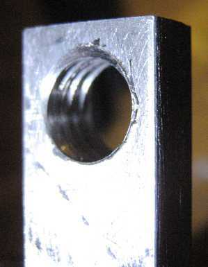 En este paso, crear el brazo de biela poniendo dos agujeros roscados a través de una pieza de aluminio. Desea un suficientemente largo barra para hacer sacar el plástico más fácil al proporcionar mayor par motor. Usé la llave NPT de 3/8"-16. Hacer esto para cada extremo de la barra: