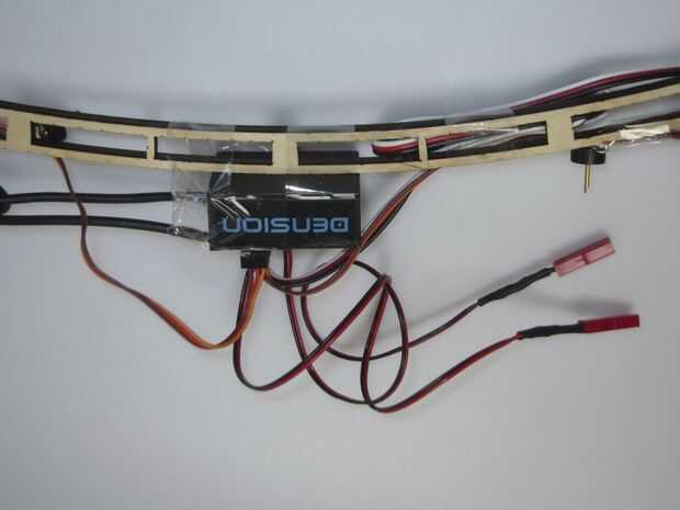 La WIRC tiene que separar circuitos de alimentación de la unidad sí mismo, necesitando al menos 5.5 V y uno de los servos. Se puede usar una fuente de alimentación de V 5.5 – 6 para ambos, pero donde como la propia unidad prospera bien en un 7,4 V Lipo de 2s, para la mayoría micro servos que es demasiado (quemar uno). Podría buscar micro servo holding hasta 7,4 V (mi plan de una próxima construcción) o utilizar un 1,5 A 5 V BEC pero simplemente agregué un 1s Lipo. Nota que en contraste con casi cualquier RC construye aquí tenemos una unidad receptora a un voltaje mayor que el sistema de propulsión, que son los servos en este caso (en una configuración clásica la WIRC tendrá la mayor tensión de la batería principal y el poder los servos dirección de BEC de la ESC).