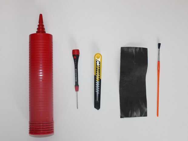 - Un pedazo de lámina de poliestireno extruido (comúnmente conocido bajo el nombre de Depron). Se puede utilizar una hoja gruesa de 3 a 6 mm, el tamaño del iris, unos 40 cm de diámetro.
