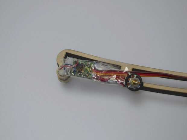 Trataba de un giro en el rotor de cola para mejorar volando derecho, pero no estoy convencido de que ayudó en todo. La ganancia era demasiado pequeña, dando sólo de baja potencia de empuje aun cuando dando rápido giro a izquierda o derecha con la mano (por supuesto en helicópteros y dichas correcciones pequeñas son lo que se necesita). La configuración del rotor de cola funciona bien para. Tal vez podría permitir un giro programable para más ganancia. O podría agregar una aleta (clara) en la parte posterior. Pero realmente volando más o menos recta no era tan difícil como esperaba con la forma redonda, siempre hay no hay fuertes corrientes de aire.