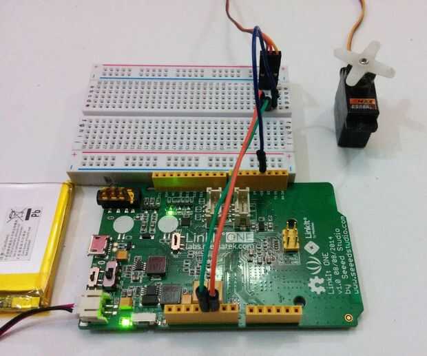 En este tutorial voy a mostrarte cómo conectar un servo a internet y controlar el ángulo del servo utilizando un navegador web. Tengo un tutorial anterior donde te muestro cómo empezar con un servo usando un LinkIt.