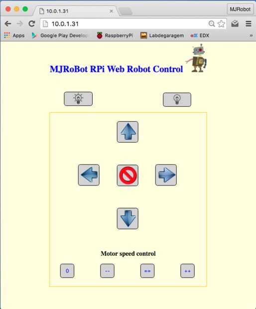 - Cuatro botones para el motor de control de velocidad == > trabajará con los scripts: nospeed.cgi, lowspeed.cgi, regularspeed.cgi y alta speed.cgi