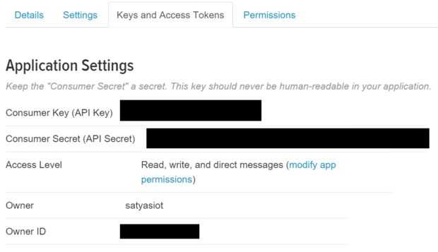 Para comunicarse con una cuenta de Twitter, vamos a necesitar algunas credenciales. Estas credenciales se almacenan por Twitter en claves que permite a los desarrolladores utilizar para sus aplicaciones. Para obtener las llaves, haga lo siguiente;