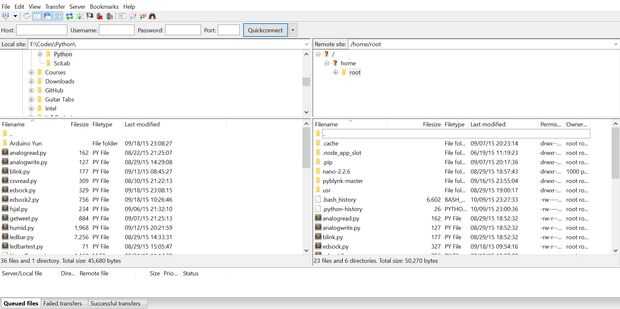En el panel izquierdo, desplácese a la ubicación donde guardaste el script. Haga clic derecho sobre él y haga clic en cargar. La barra de transferencia en la parte inferior debe indicar a una transferencia exitosa.